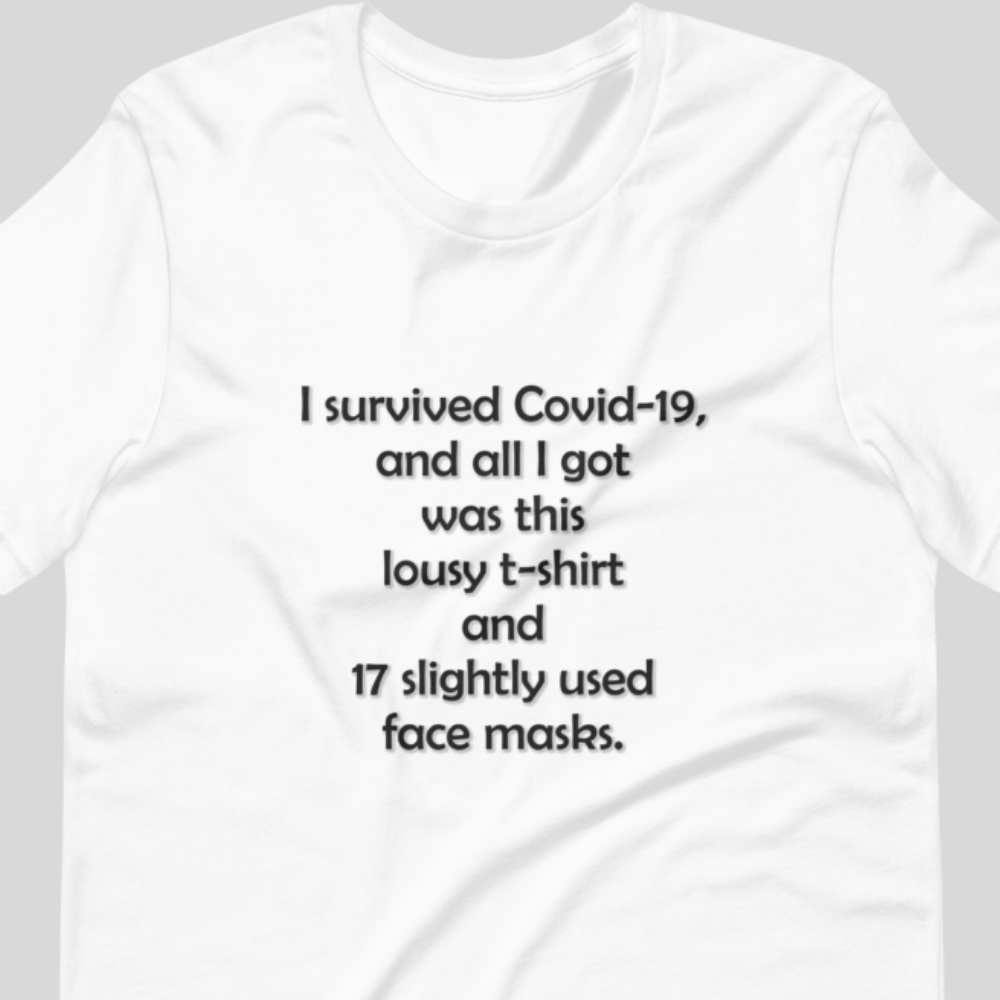 If you have survived the COVID pandemic, then it's time to assess what you have come away with. Wear this T-Shirt and declare that you are a survivor!