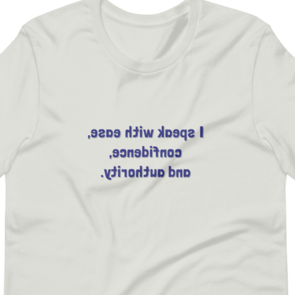Wear this MirrorImage™ t‑shirt, and send a message to affirm your ability to speak effectively … whether it’s public speaking, team meetings, group discussions, one‑on‑one conversations, or other verbal interactions.