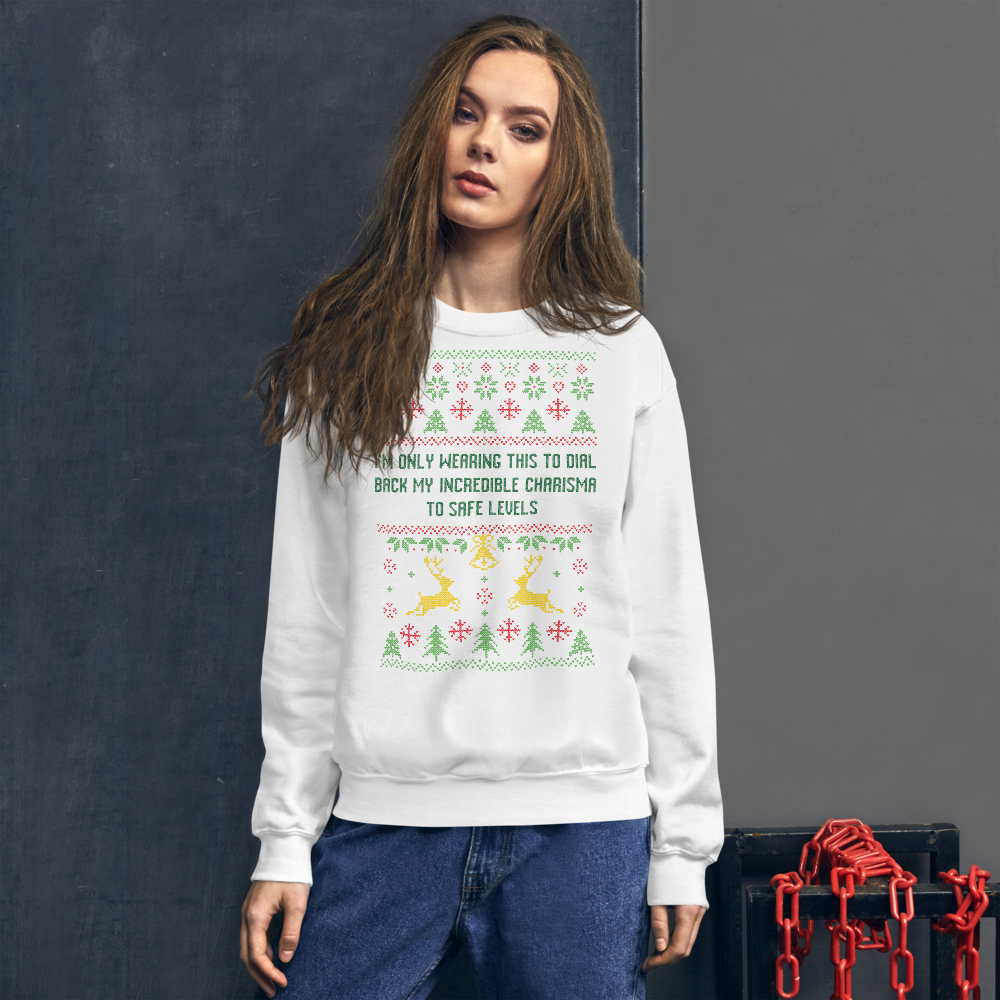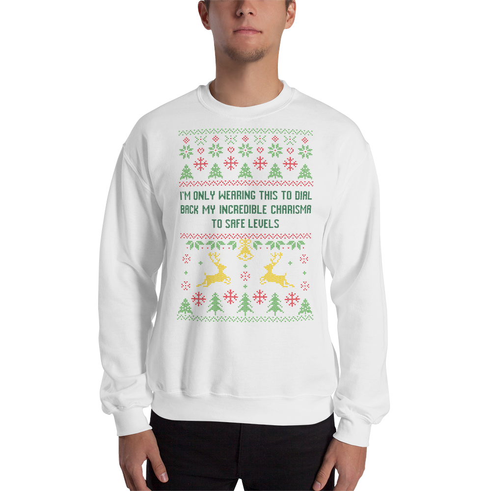 Yes, it's an "Ugly Christmas Sweater" but that doesn't mean your terrific personal impact will be lost or covered up. Think of this garment as something that tempers your incredible charisma to levels mere mortals can accept.
