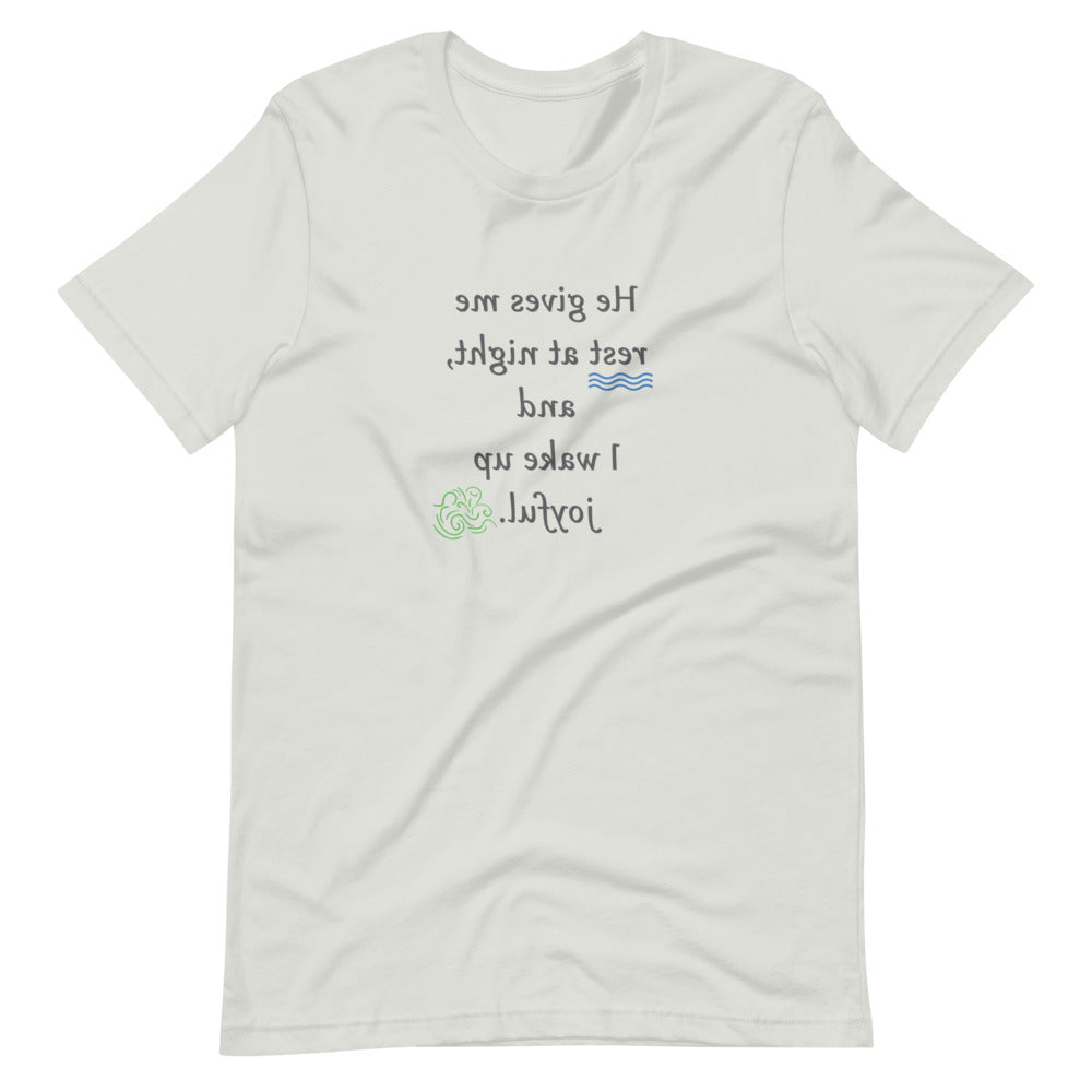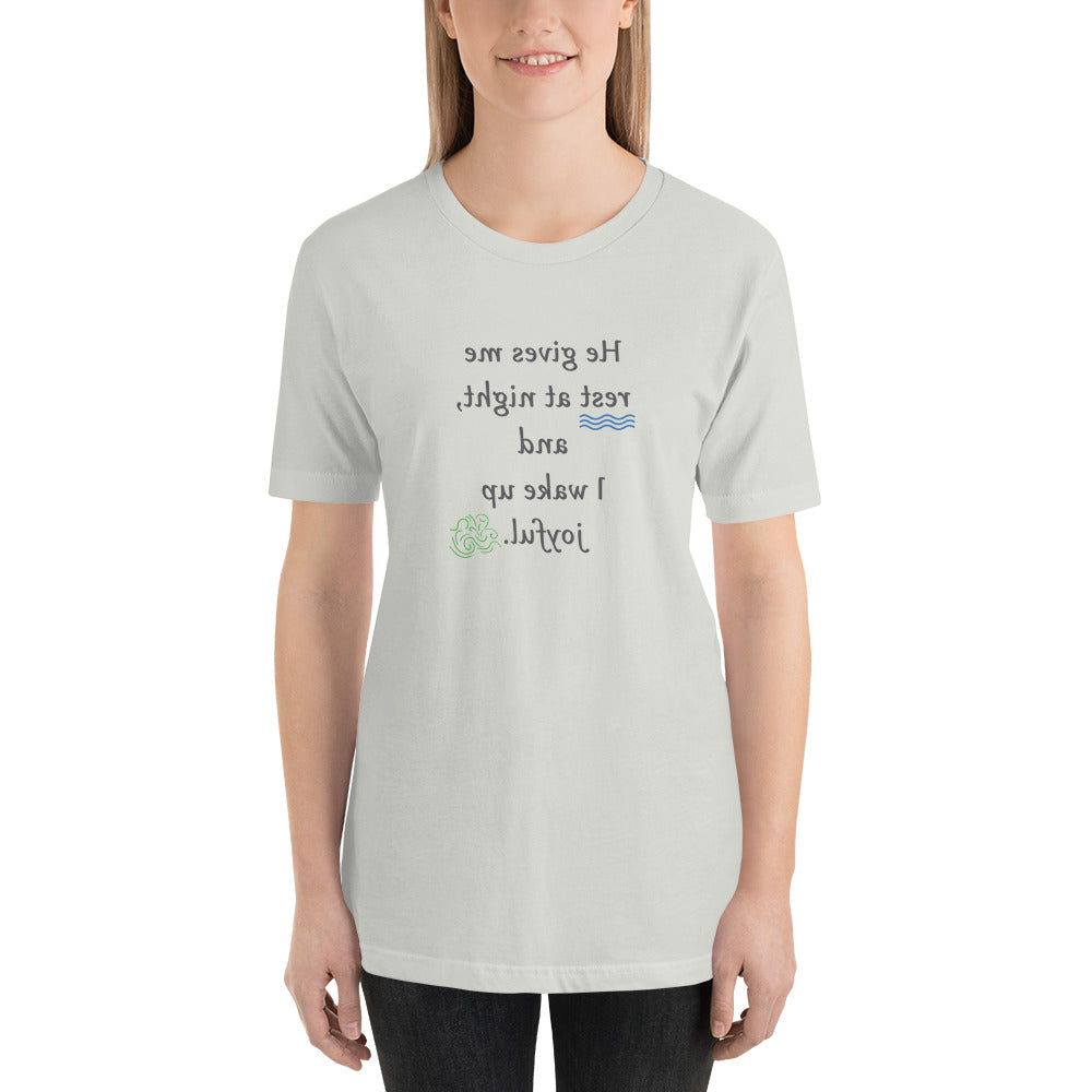 Send a message to yourself about getting rest and waking up with joy. Whether you wear it at night or during the day, this MirrorImage™ t‑shirt reminds you what the Lord wants for you.